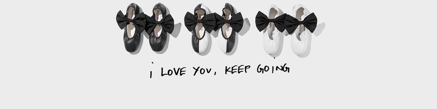 La línea se trata de zapatos de ballet con un gran lazo, y se pueden encontrar en negro, blanco y con ambos colores.